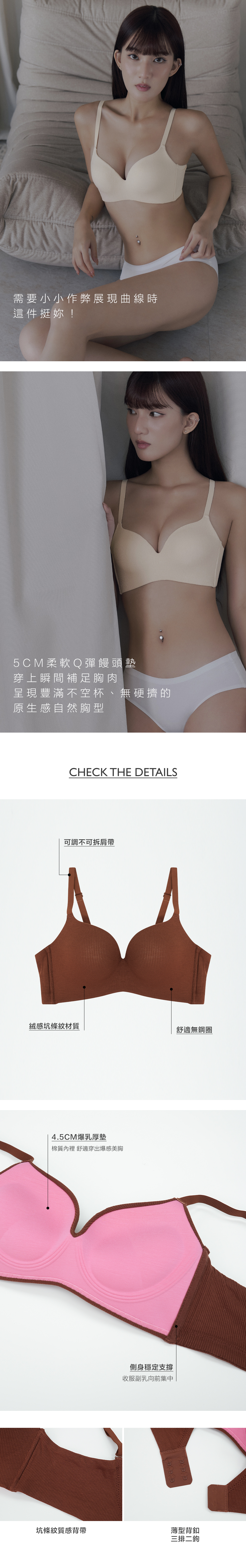 5CM柔軟Q彈饅頭墊,穿上瞬間補足胸肉