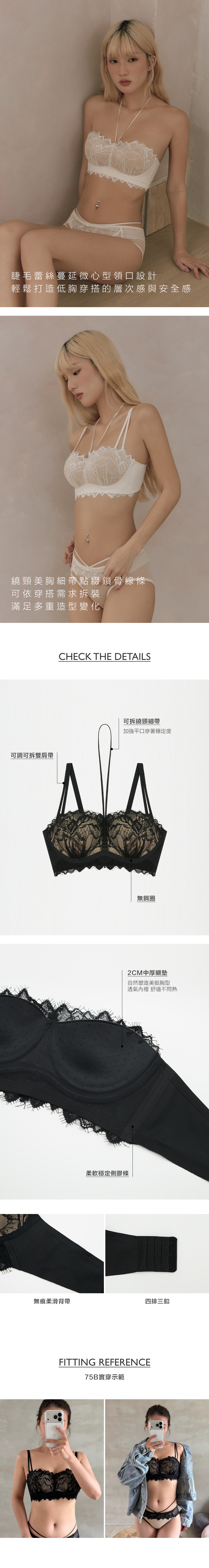 睫毛蕾絲蔓延微心型領口設計