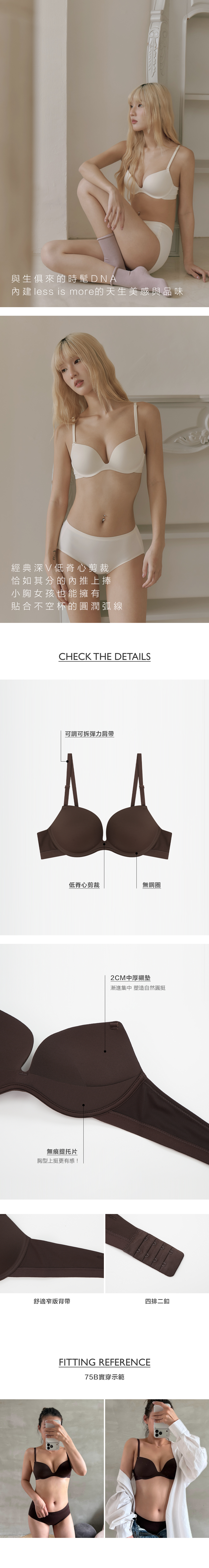 經典深V低脊心剪裁 恰如其分的內推上捧