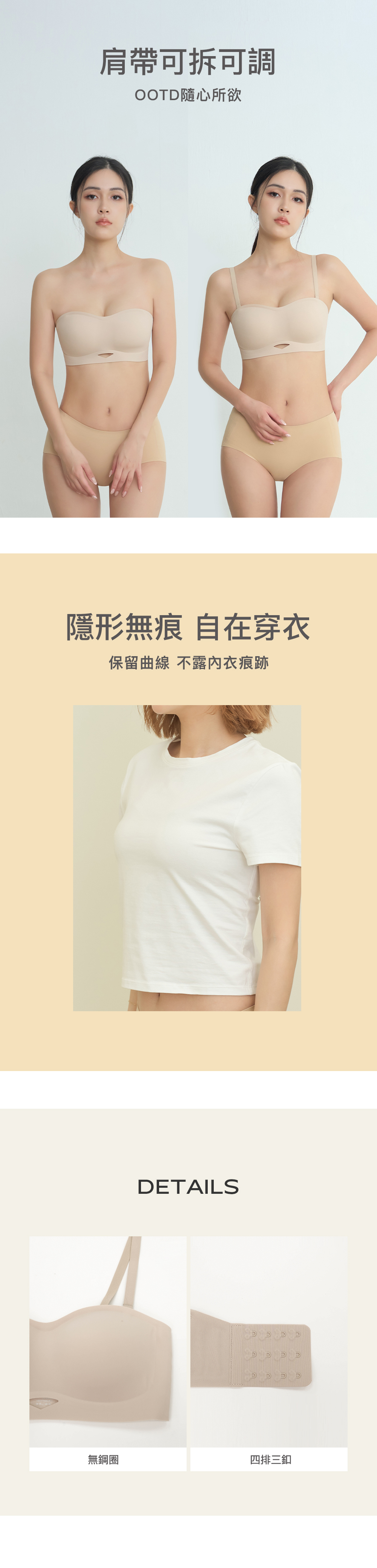 - 四排三釦隱形背釦設計
